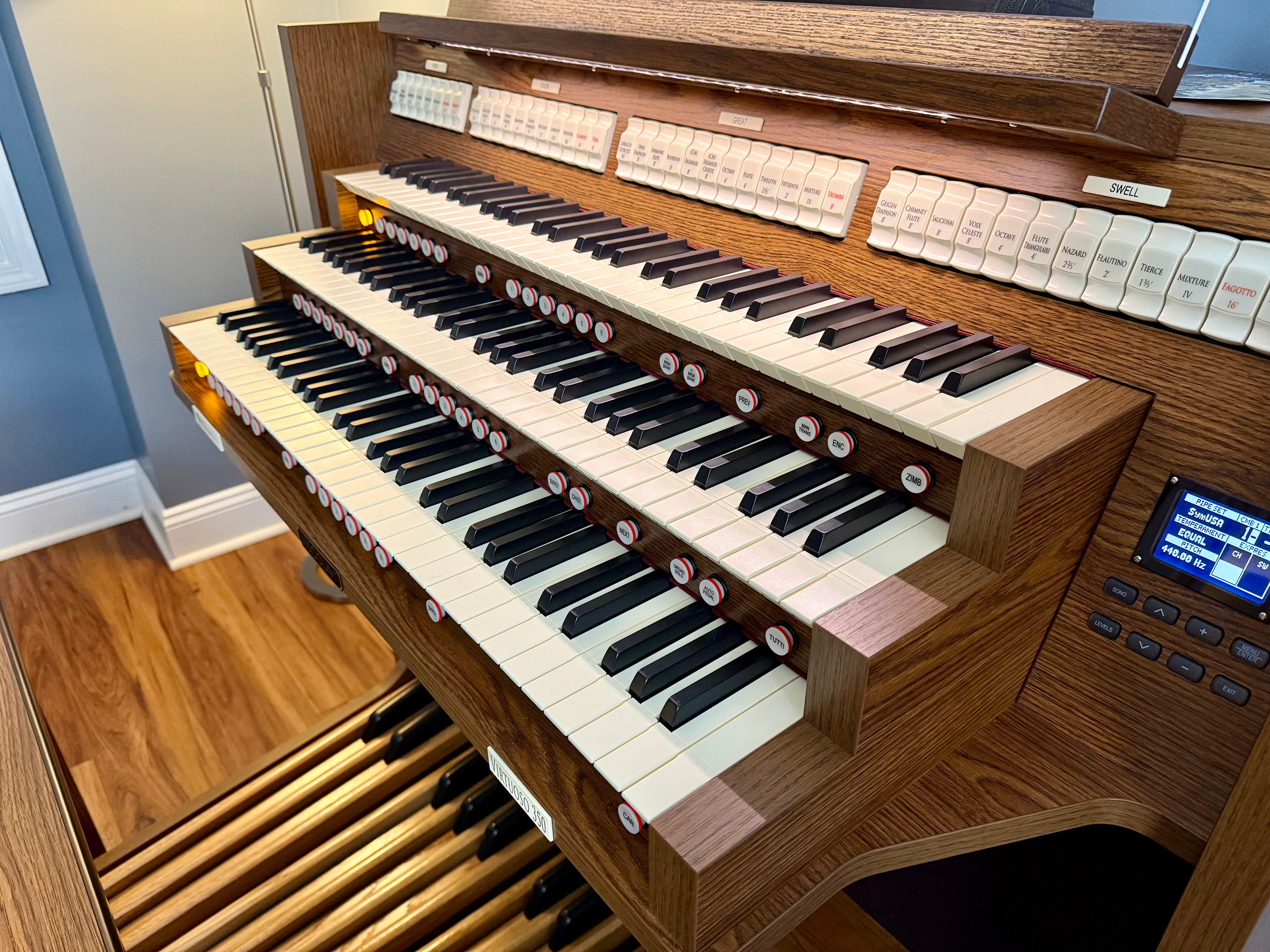 The organ I chose to replace my Hauptwerk setup is the Viscount Virtuoso 350. This is the American version of Domus series. This series, along with the Cantorum line, uses the new Physis Plus technology, which is good enough to move me off of the Hauptwerk platform.